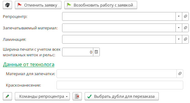 Отредактировать флексоформу (иконка карандаш) - позволяет изменить параметры изготавливаемой формы, например установить или убрать технологию. Внимание , когда заявка находится в репроцентре и вы изменяете технологию, изменение автоматически не попадает в репроцентр.