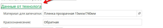 Вкладка Данные от технолога - показывает информацию от технолога