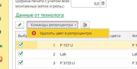 Удалить цвет в репроцентре - удаляет цвет из бланка заказа, если цвет в бланке последний удаляет бланк.
