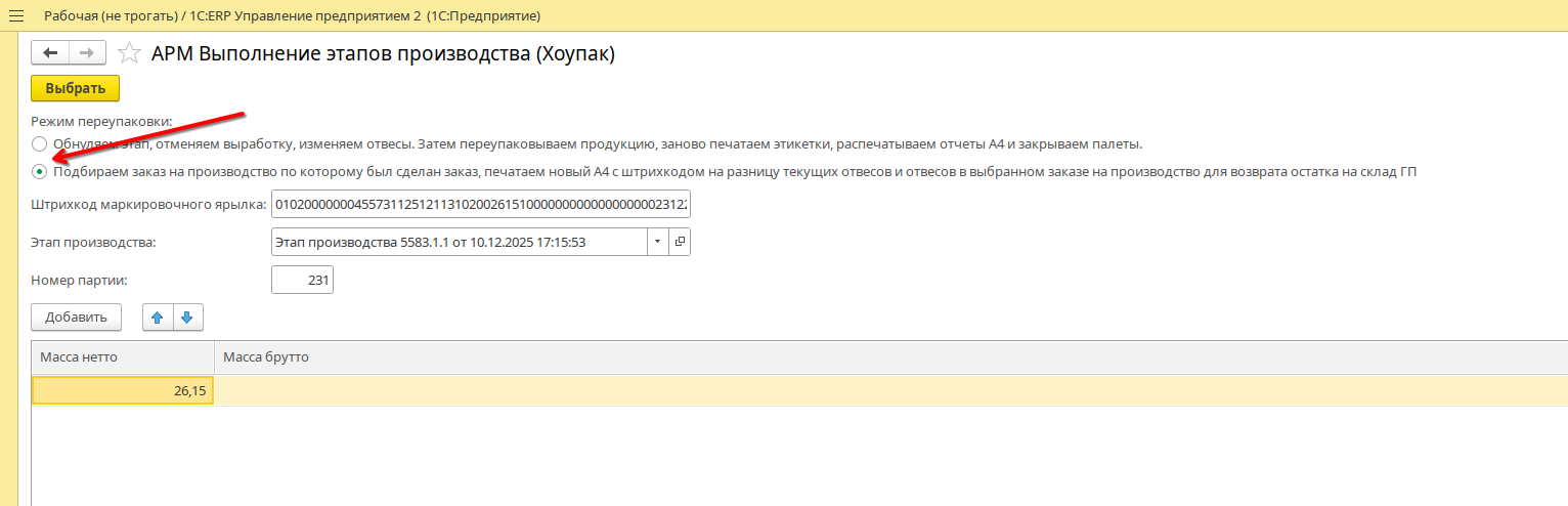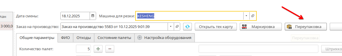 Попасть в пункт меню можно через команду «Переупаковка» в рабочем месте «Упаковщицы»