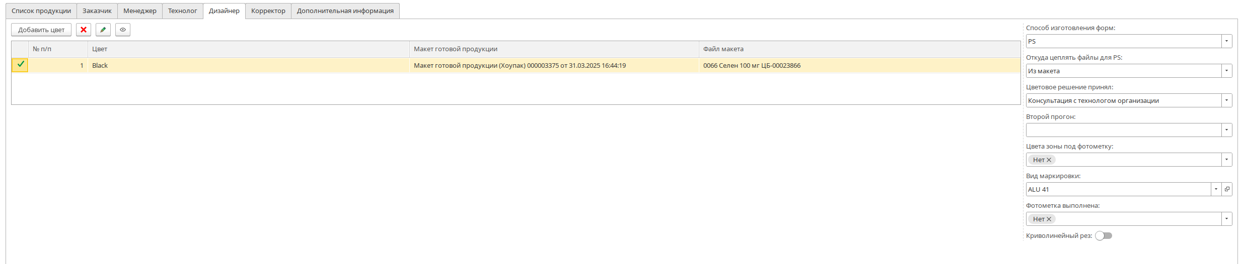 Если указан способ изготовления форм - PS, тогда необходимо выбрать файл PS, который связан с данным цветом.