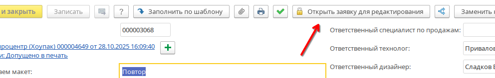 Необходимо зайти в заявку и открыть её для редактирования