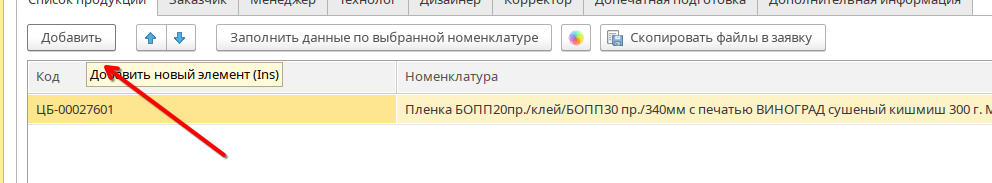 Затем нажать на кнопку добавить и выбрать нужную номенклатуру