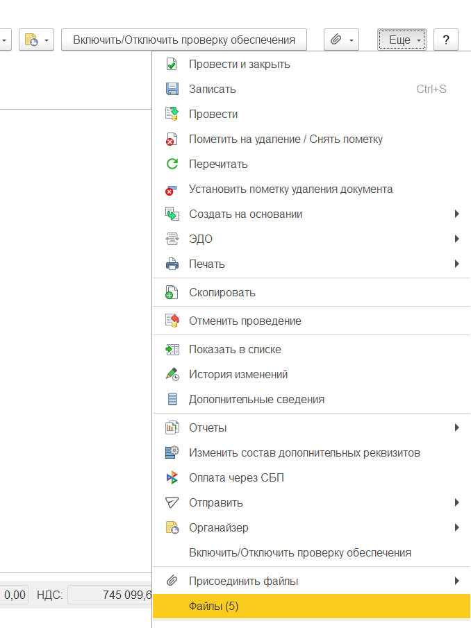 Если ссылки файлы не видны необходимо нажать на клавишу ещё и выпадающем меню выбрать пункт Файлы
