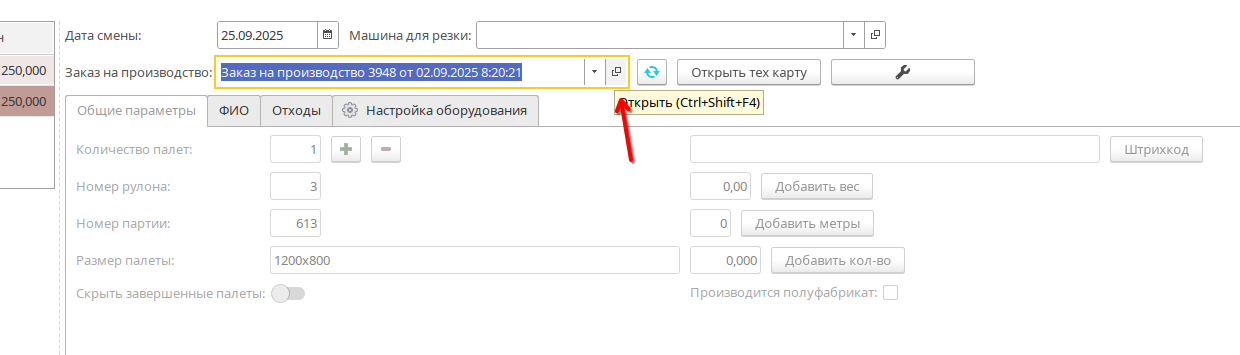 В рабочем месте упаковщицы нажать на кнопку «Открыть»