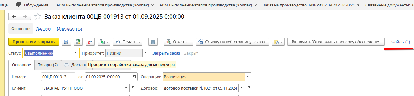 В заказе клиента нажать на ссылку файлы однократно левой клавишей мыши