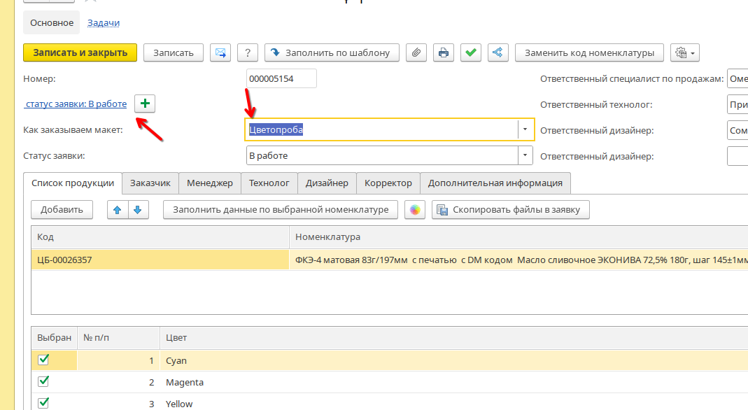 После нажатия появится новый бланк с признаком «Цветопроба»