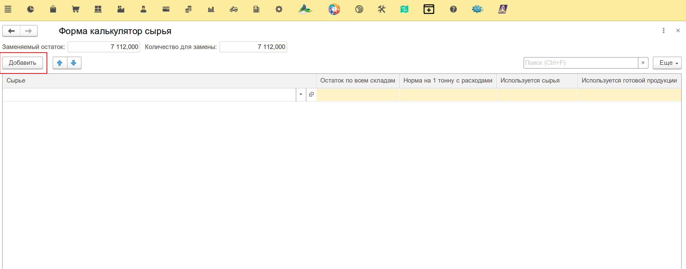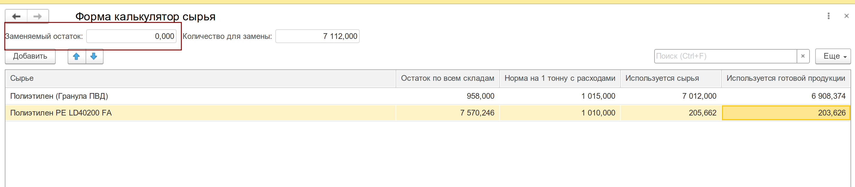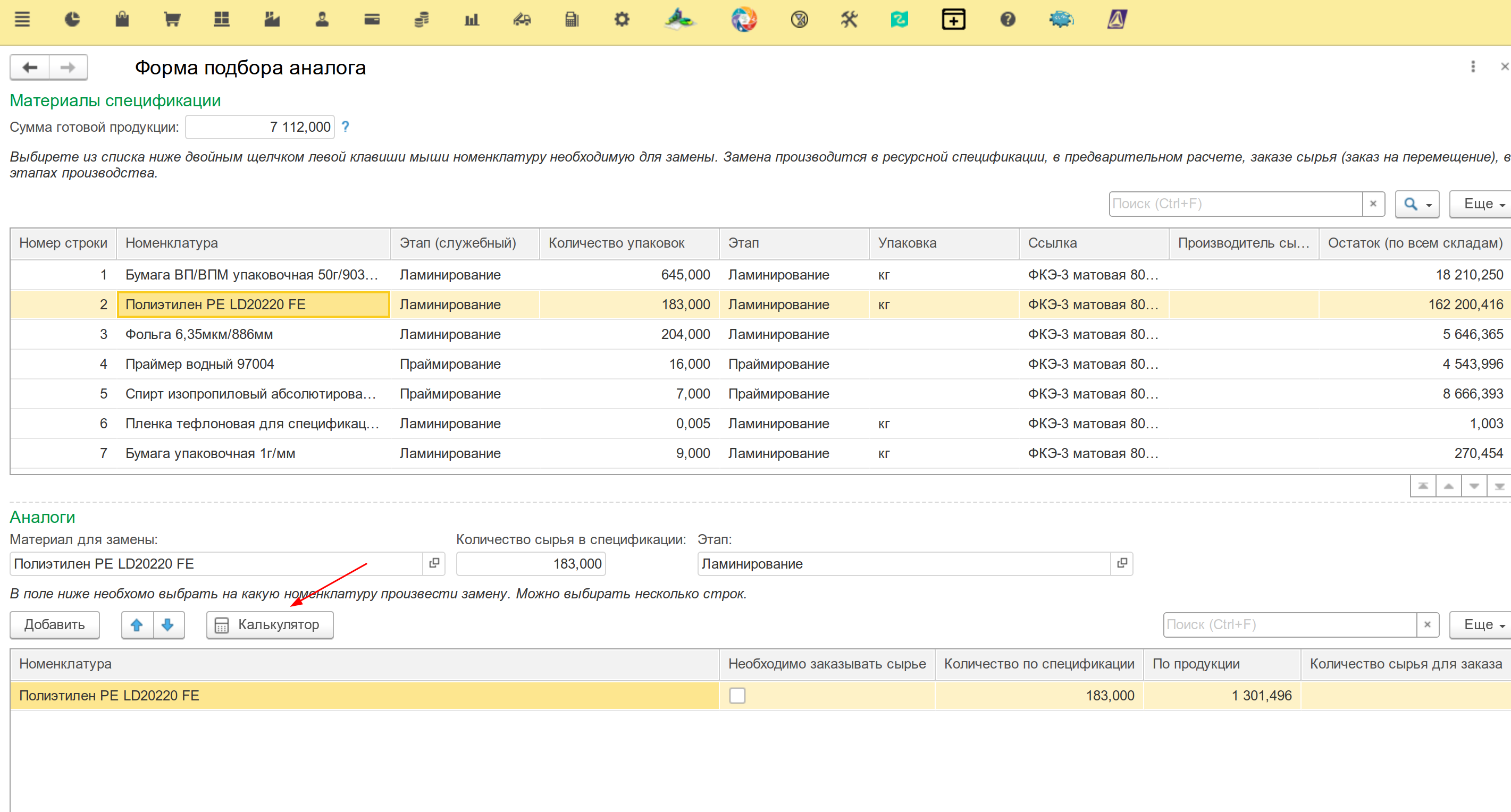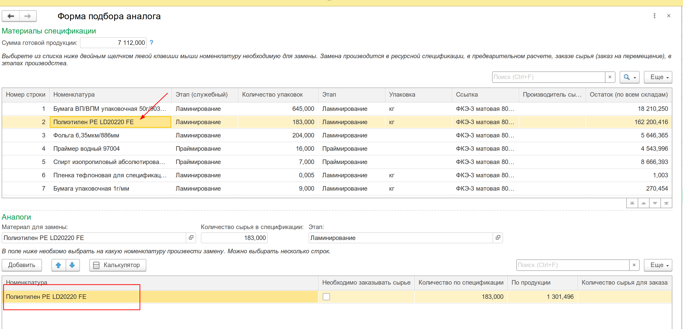 Выбираем сырье или полуфабрикат для замены из Номенклатуры