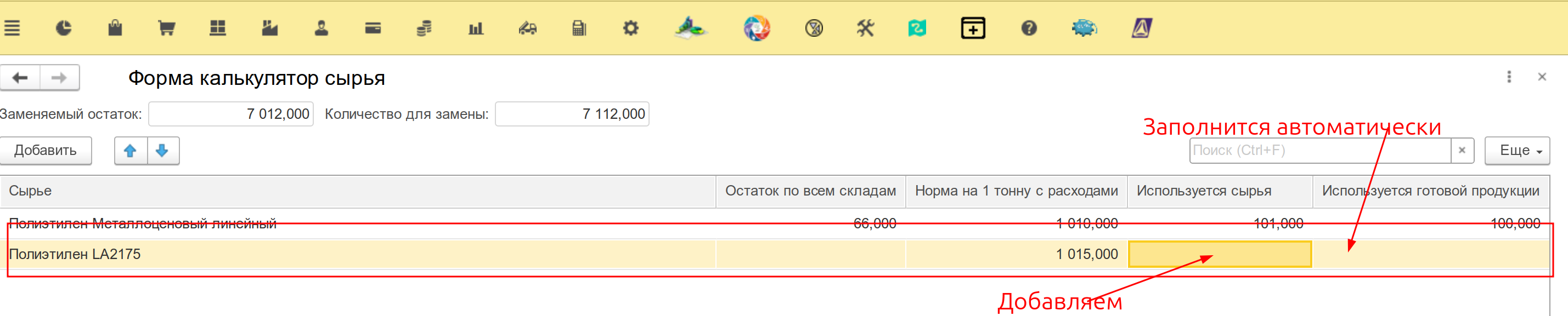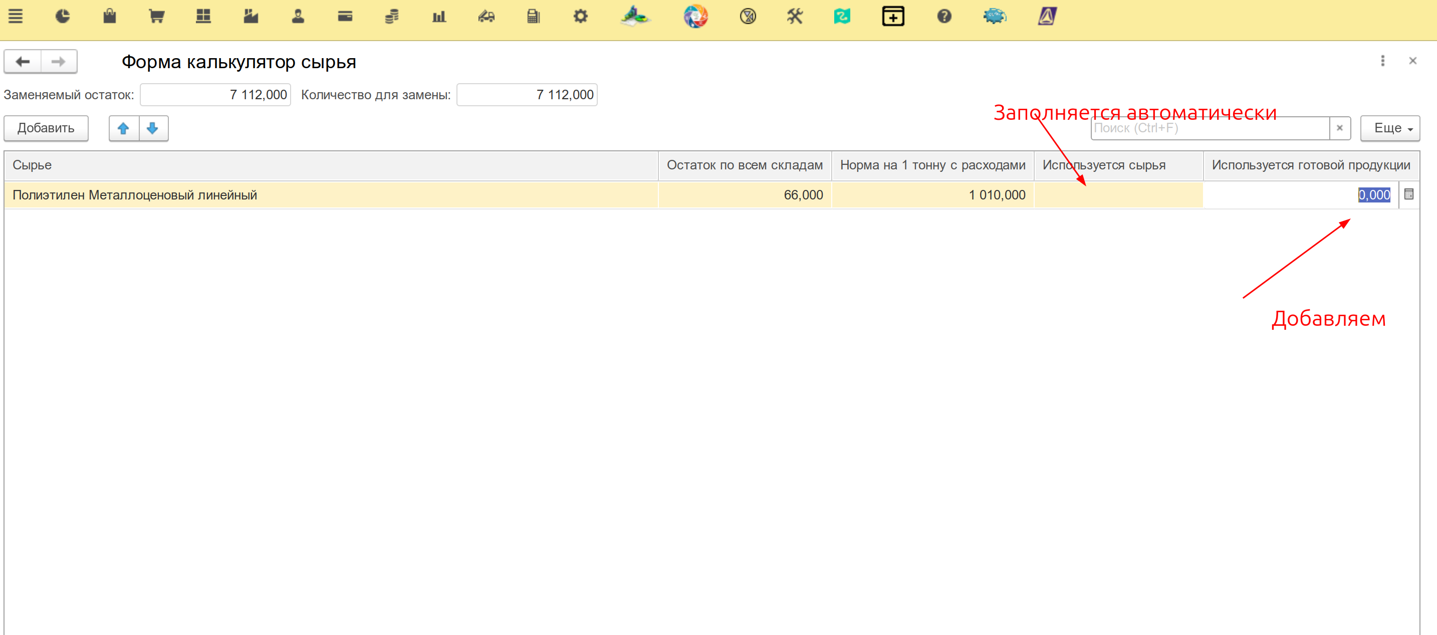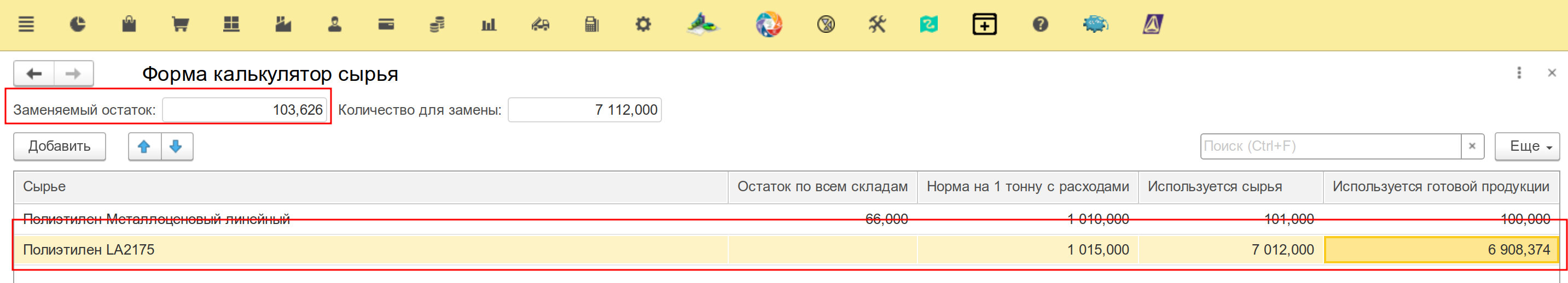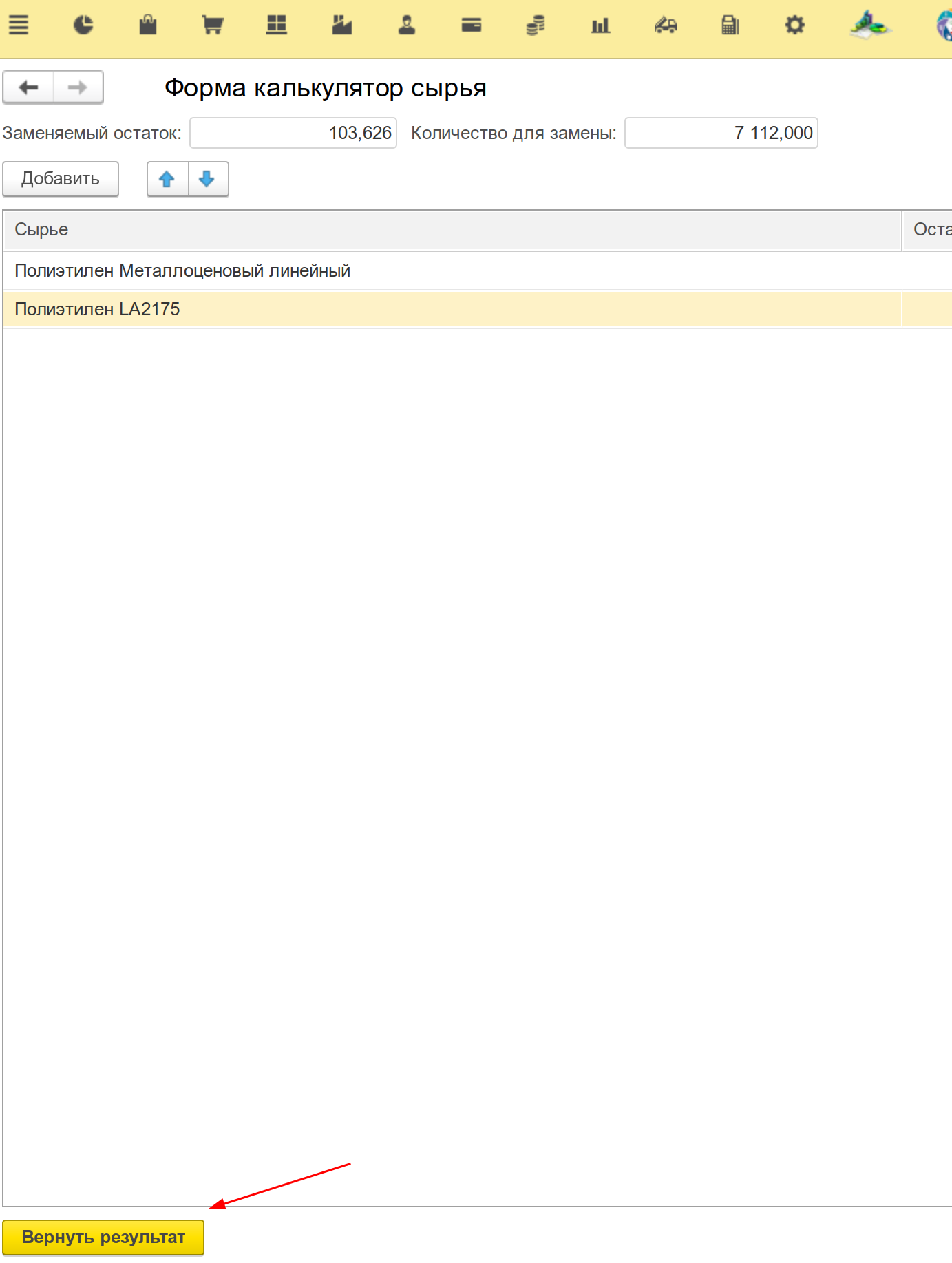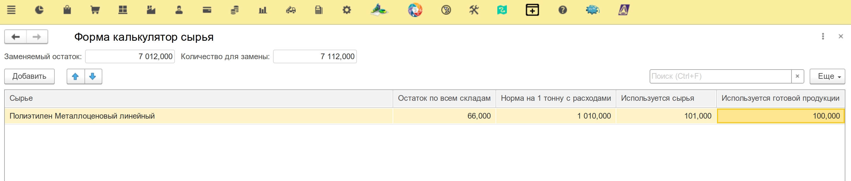 Выбираем сырье или полуфабрикат для замены из Номенклатуры