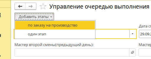 по заказу на производству - позволяет добавить все этапы по выбранному заказу на производству , если этапы есть в очереди, тогда они повторно не будут добавлены
