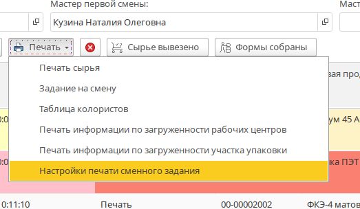 Настройки печати сменного задания - позволят настроить какие машины необходимо выводить при печати сменного задания.