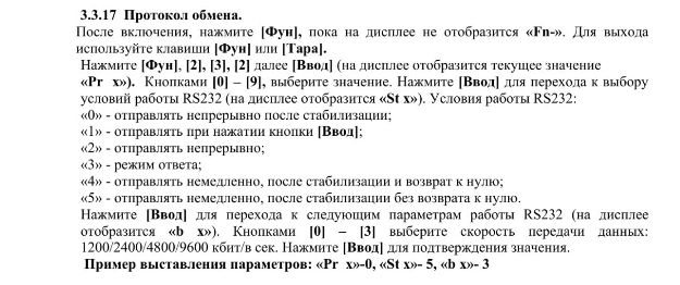 У весов настраивается передача данных: Fn 2-3-2 [Ввод] 6 [Ввод] 2 [Ввод] 3 [Ввод] Fn
