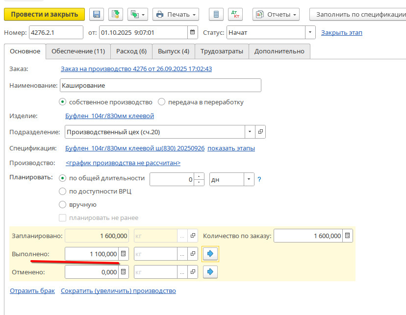 Если поставить выработку 1100, тогда с округлением получится 2 без округления 1, что не верно, чтобы разместить продукции более чем тонна, необходимо 2 поддона.