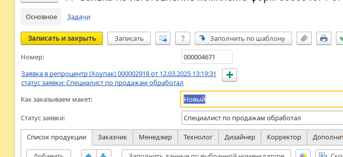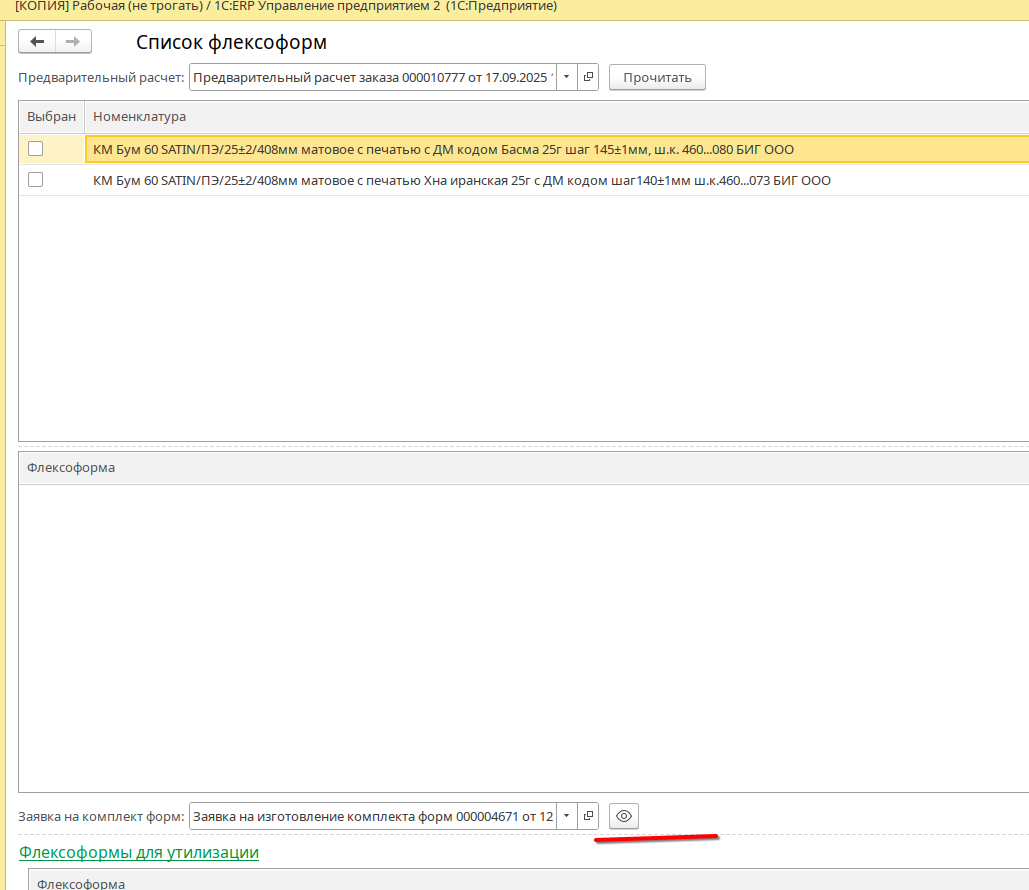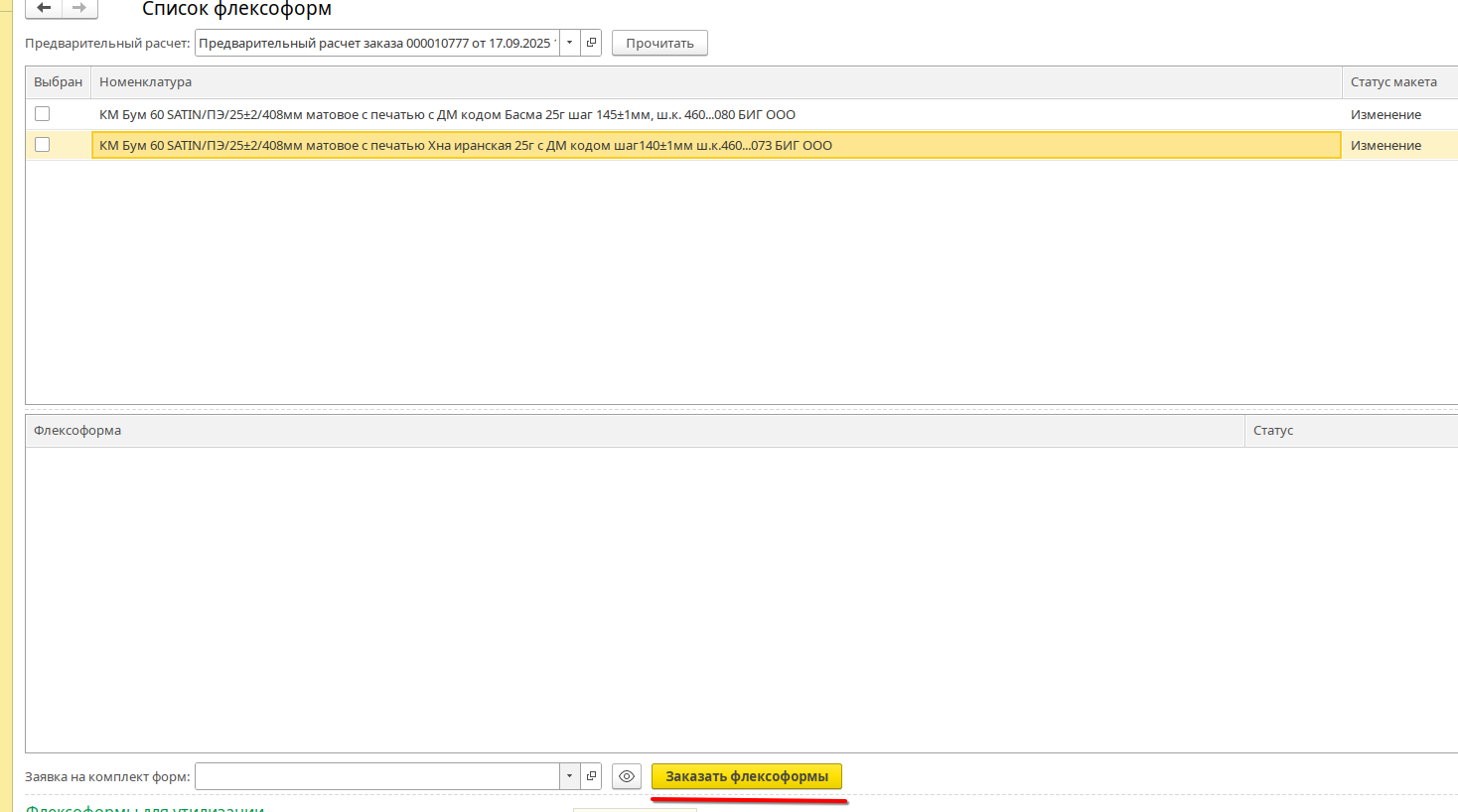 Откуда можно создать заявку на изготовление комплекта флексоформ¶