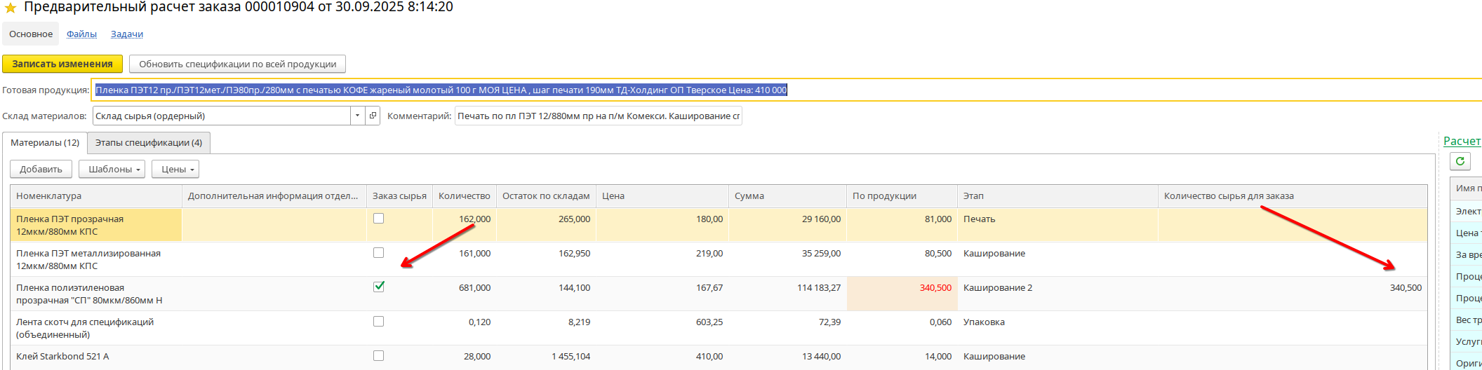 Изначально технолог резервирует сколько ему нужно сырья для изготовления данного ассортимента в предварительном расчете заказа