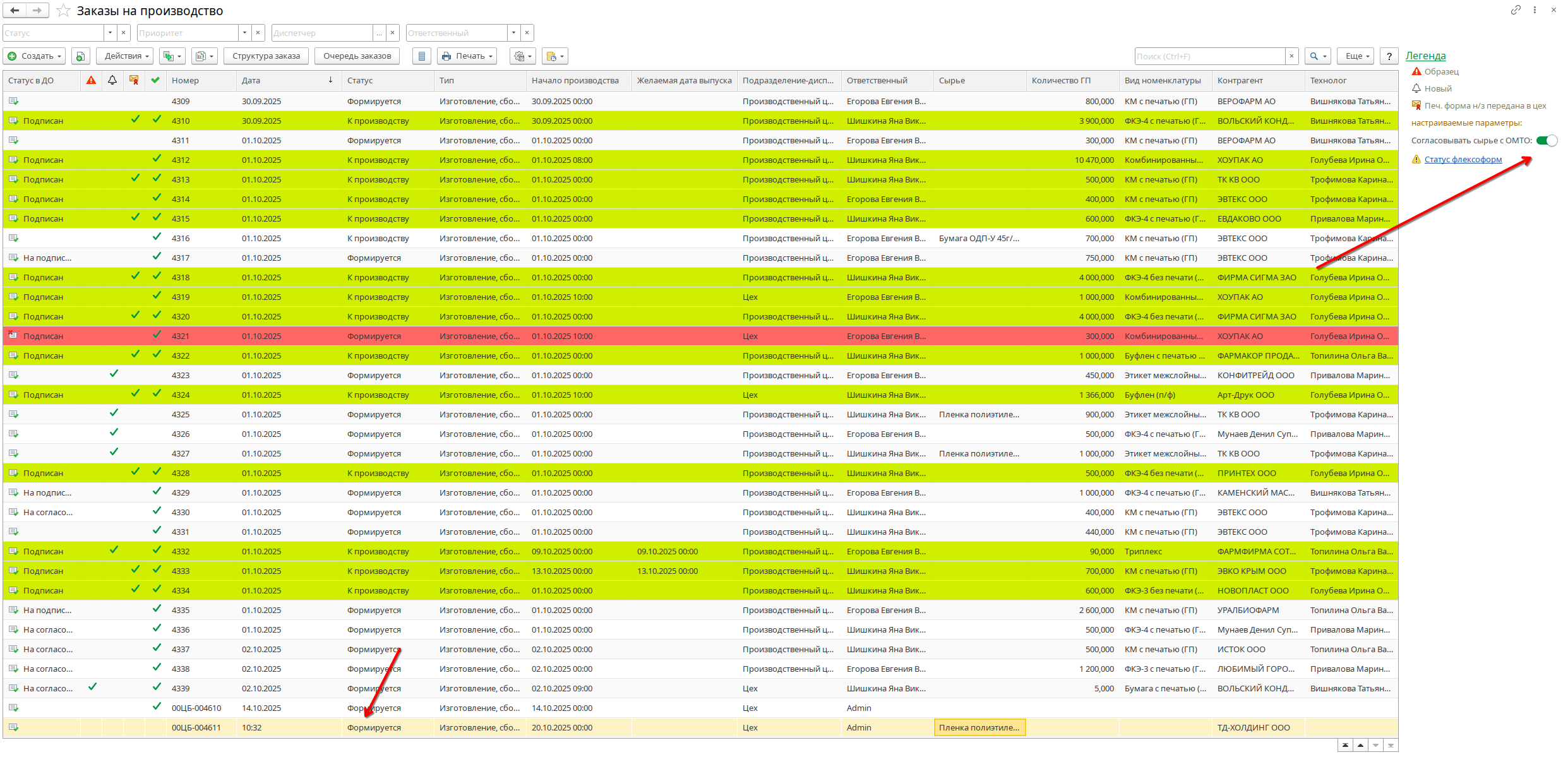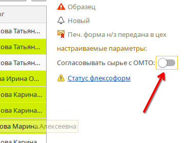Как только сырье прибыло на склад, ОМТО отключает признак в списке заказов на производство.