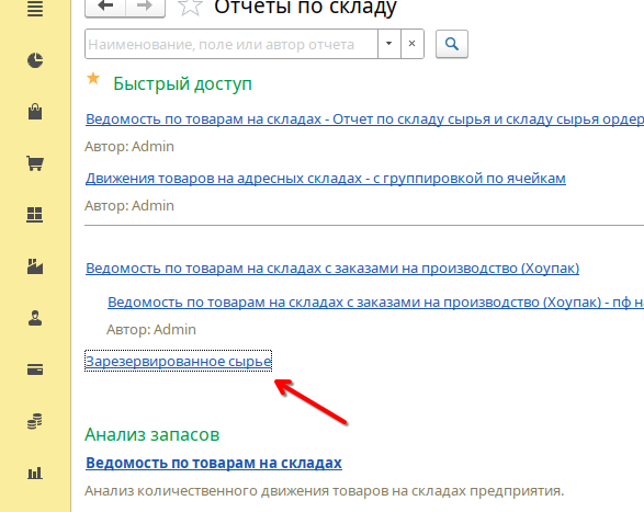 Просмотреть какое сырье сейчас было зарезервировано и под какую продукцию можно в отчете «Зарезервированное сырье»