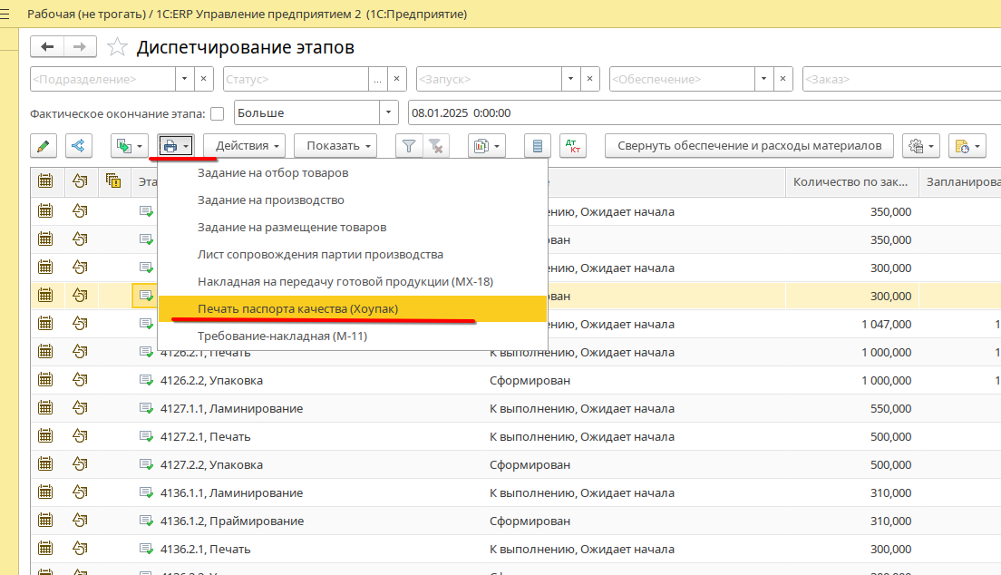 Справочник в котором указывается информация какая информация будет распечатана в паспорте качества.